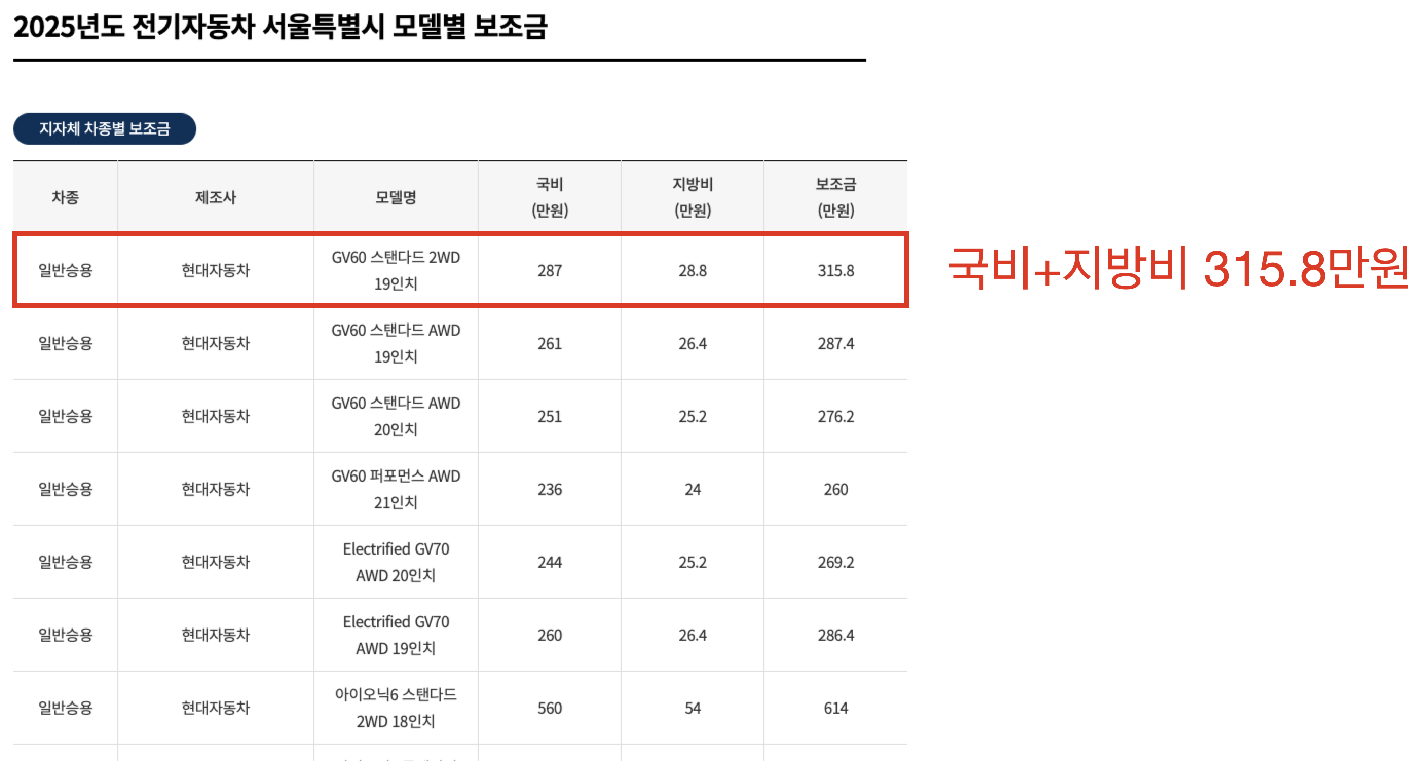 예를들어 서울시에서 GV60 스탠다드 2WD 19인치를 사게 된다면?