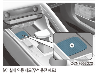 2) 차량내 실내인증패드(무선충전 패드)위에 올려놓고 시동을 걸 수 있습니다.