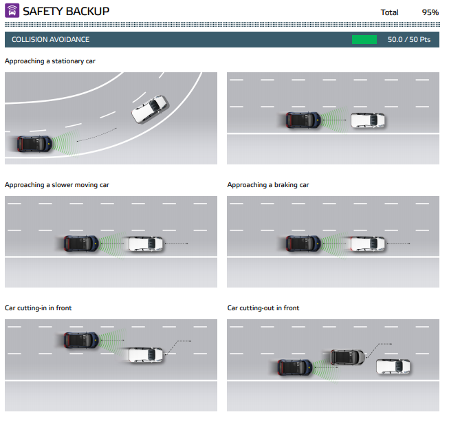 - Euro NCAP의 평가 comment를 확인해보면, 시스템 이름에 "Auto"가 들어간다는 점에서 15점이 감점된것을 알 수 있다. 보조 시스템인데도 불구하고 이름은 마치 시스템이 모든걸 하는것처럼 작명되었기 때문에 소비자에게 혼란을 줄 수 있다는 것이다