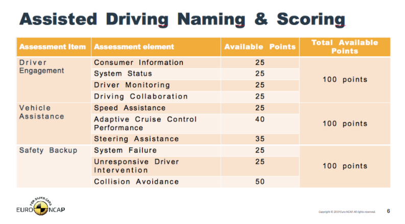 For its 2020 assessment of Highway Assist systems, Euro NCAP has developed dedicated test and assessment protocols, divided into two main areas: Assistance Competence, based on the balance between Driver Engagement and Vehicle Assistance, and Safety Backup