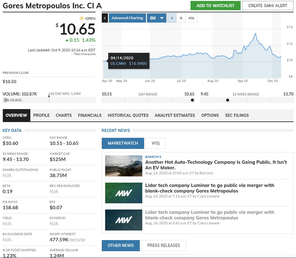 GMHI는 라이다로 유명한 루미나의 스팩주다(스팩주에 대한 궁금증은 블로그나, 구글에 잘 설명이 되어있다)